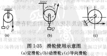 軸的位置不變。在使用時,只能改變鋼絲繩的方向,不節省力,如圖1-35(a)所示。